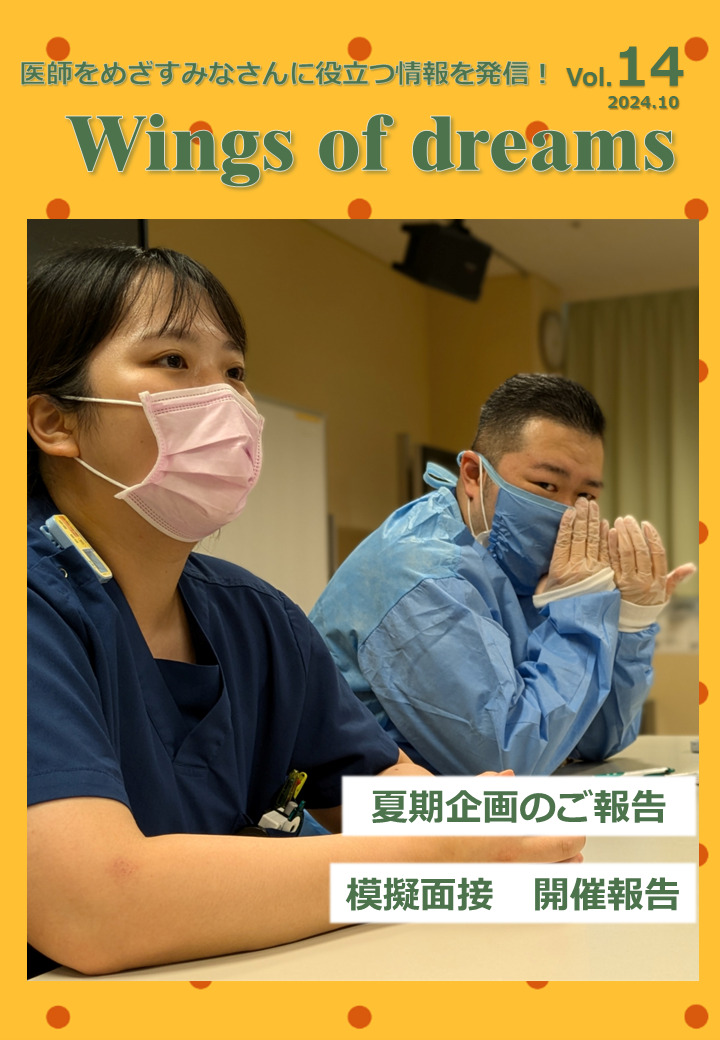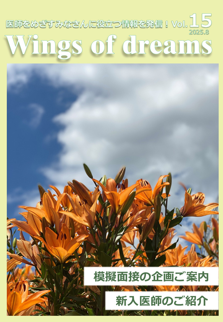 「Wings of dreams」=「夢の翼」という意味です。医学部をめざすみなさんへ現役医師や医学生からのアドバイス、勉強に疲れた時のストレッチ方法など様々な内容を掲載しています。また、医師体験や模擬面接など、新潟民医連の企画もお知らせしていきます。ご興味のある方はお気軽にご連絡ください。